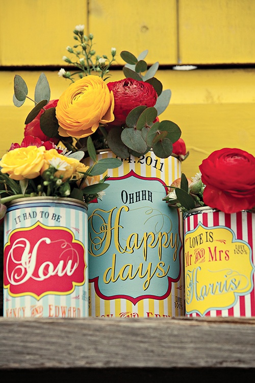 I love this idea! Print out vintage labels and put them on old cans.