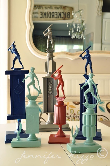 These spray painted trophies can be made to accessorize with your team colors! Such a fun idea!
